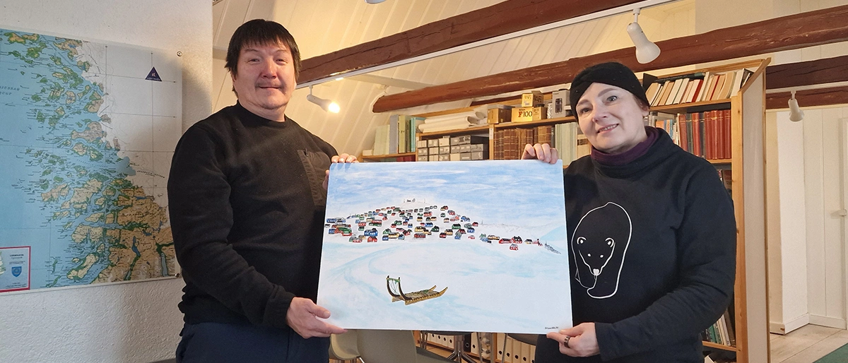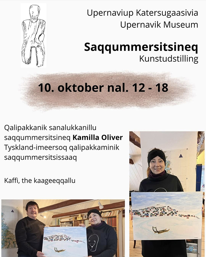 Die Ausstellung wurde am 10. Oktober 2025 im Beisein des Museumsdirektors, Edvard Petersen, und der Künstlerin eröffnet (Foto: Knud Kristiansen, Upernavik). Die Künstlerin schenkte dem Museum ein Gemälde mit einer Ansicht von Upernavik. Die Ausstellung stieß auf großes Interesse in der lokalen Bevölkerung.